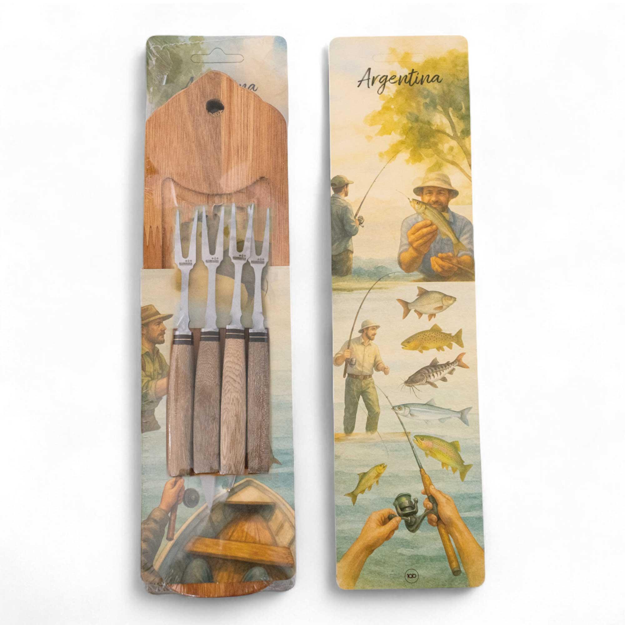 Juego de 4 Tenedores para picada SCHMIEDEN hoja 8cm cabo madera con Tabla Alistonada en Blister